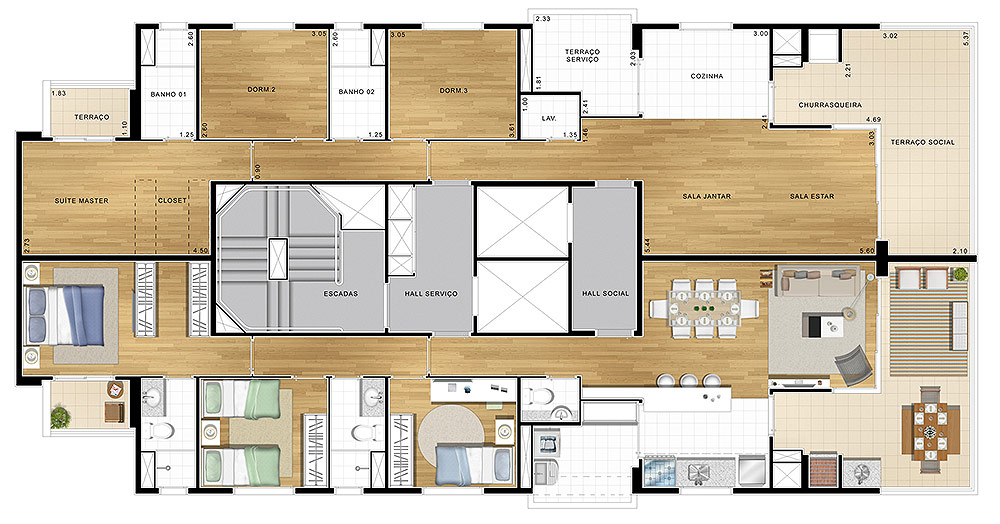 Apartamentos com 110,31m² de área privativa